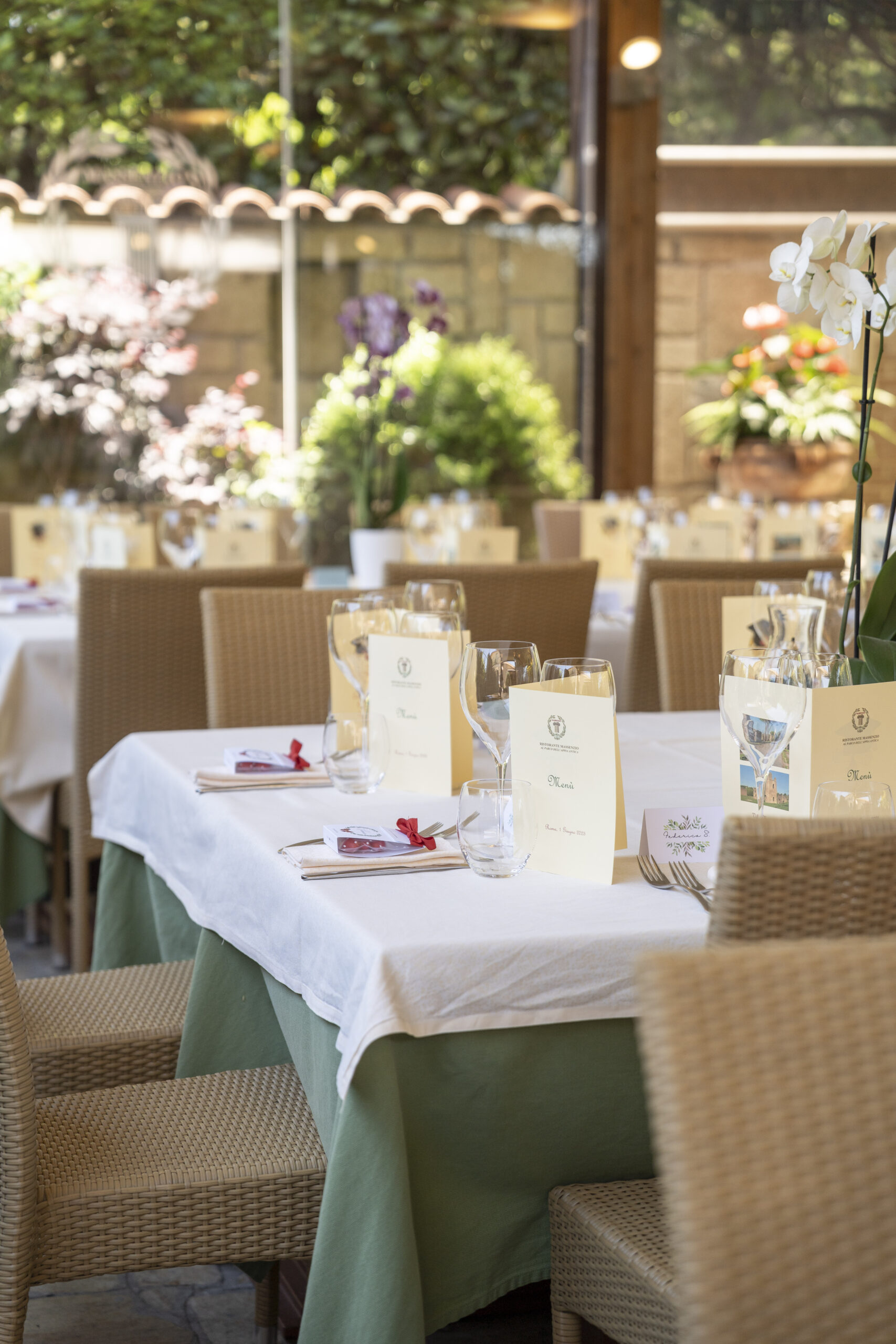 Il Ristorante Massenzio si trova all’interno del suggestivo Parco dell’Appia Antica, un luogo unico che conserva il fascino dell’antica Roma immerso nel verde. Tra rovine storiche, alberi secolari e scorci incantevoli, la nostra location regala un’atmosfera intima e senza tempo, perfetta per ogni occasione: da una cena romantica a un evento speciale.